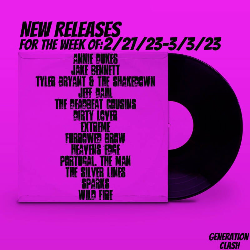This week's new releases include: Annie Dukes, Jake Bennett, Tyler Bryant & The Shakedown, Jeff Dahl, The Deadbeat Cousins, Dirty Lover, Extreme, Furrowed Brow, Heavens Edge, Portugal. The Man, The Silver Lines, Sparks, and Wild Fire!